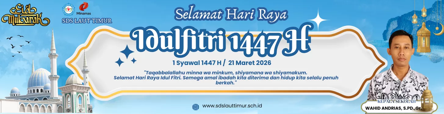 Saya, Wahid Andrias, S.Pd.,Gr. selaku Kepala Sekolah SDS Laut Timur, beserta seluruh jajaran guru dan staf, mengucapkan Selamat Hari Raya Idulfitri 1 Syawal 1447 H.
